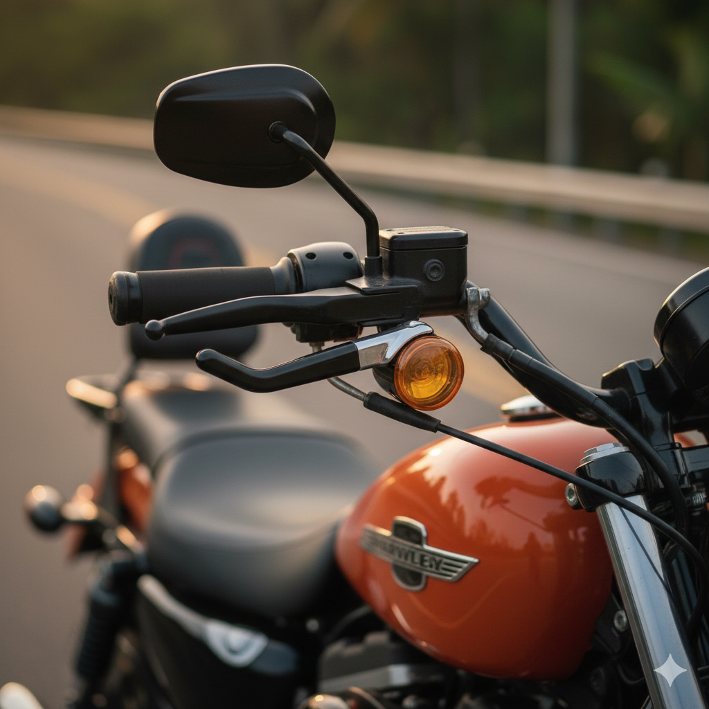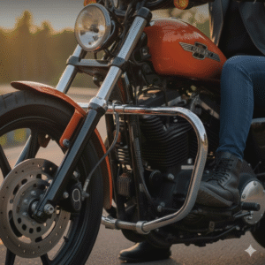Example: Installing Highway Crash Bars on a Softail or Sportster improves confidence during low-speed maneuvers.